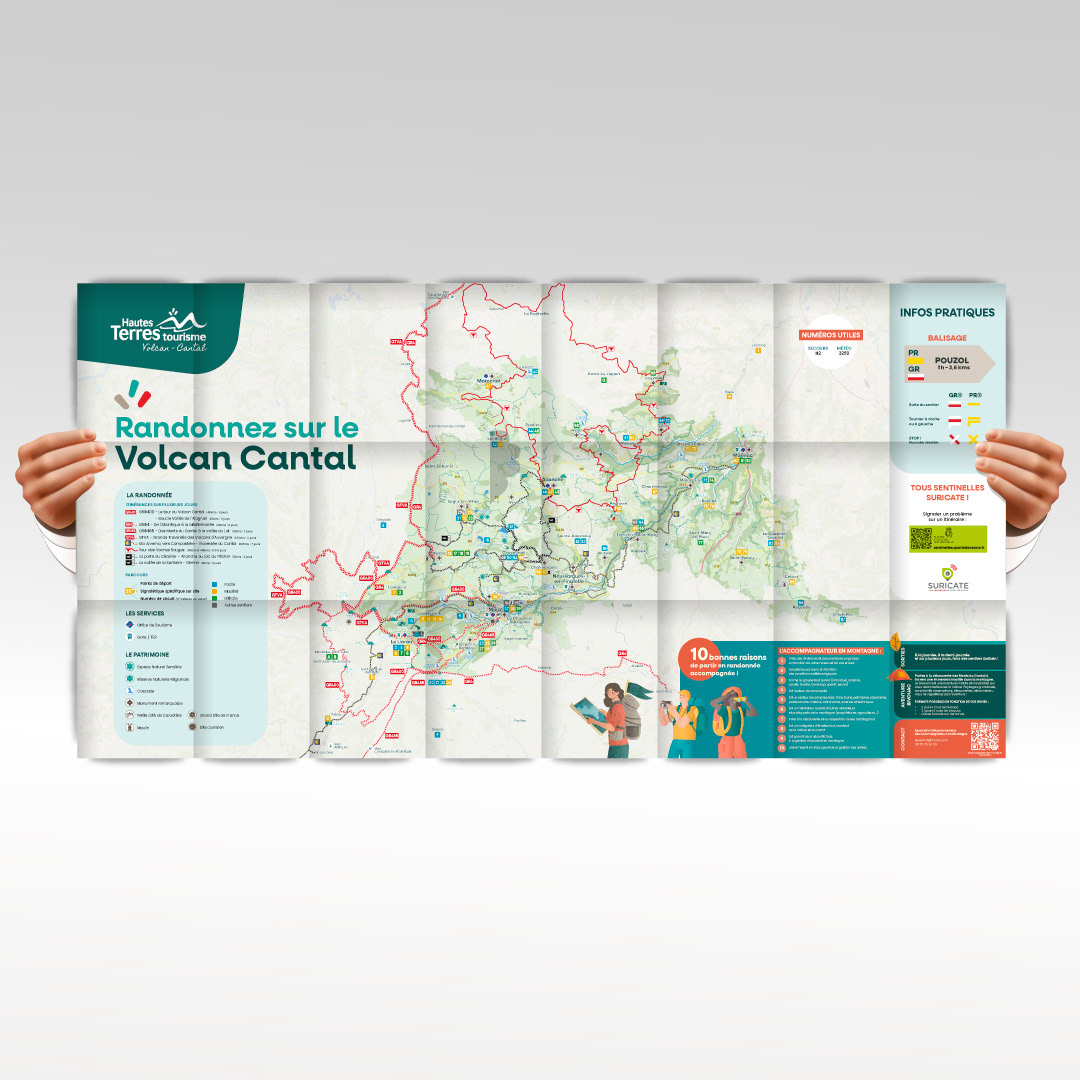 Création graphique de la partie cartographe de la carte des randonnées pour Hautes Terres tourisme Volcan-Cantal