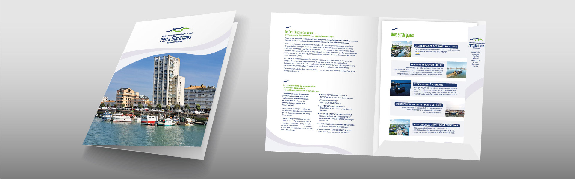 Conception d'une pochette à rabats et de fiches pour l'association nationale des ports maritimes et territoriaux