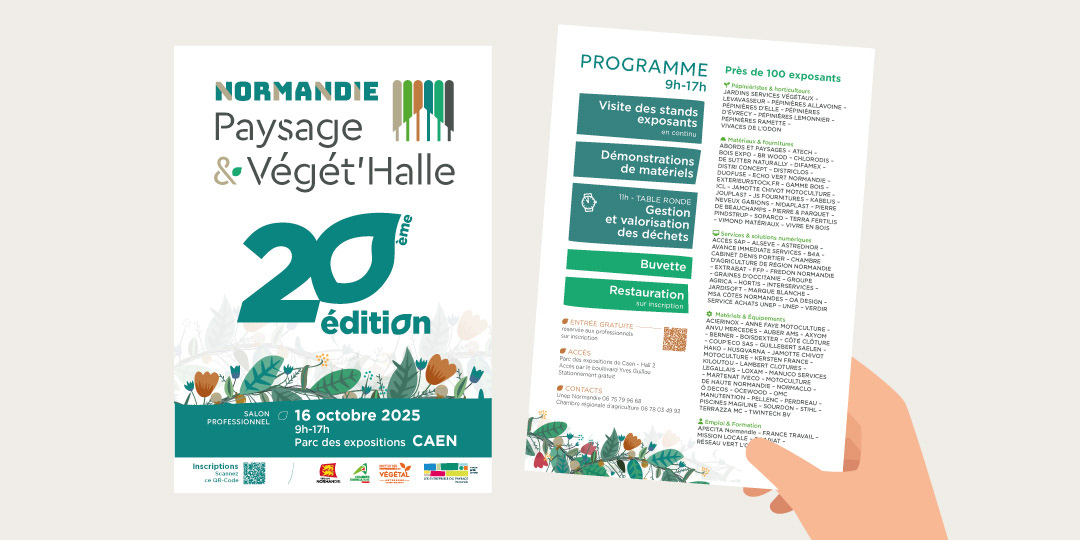 Identité visuelle du salon Normandie paysage & végét’halle : une nouvelle signature pour la 20e édition.