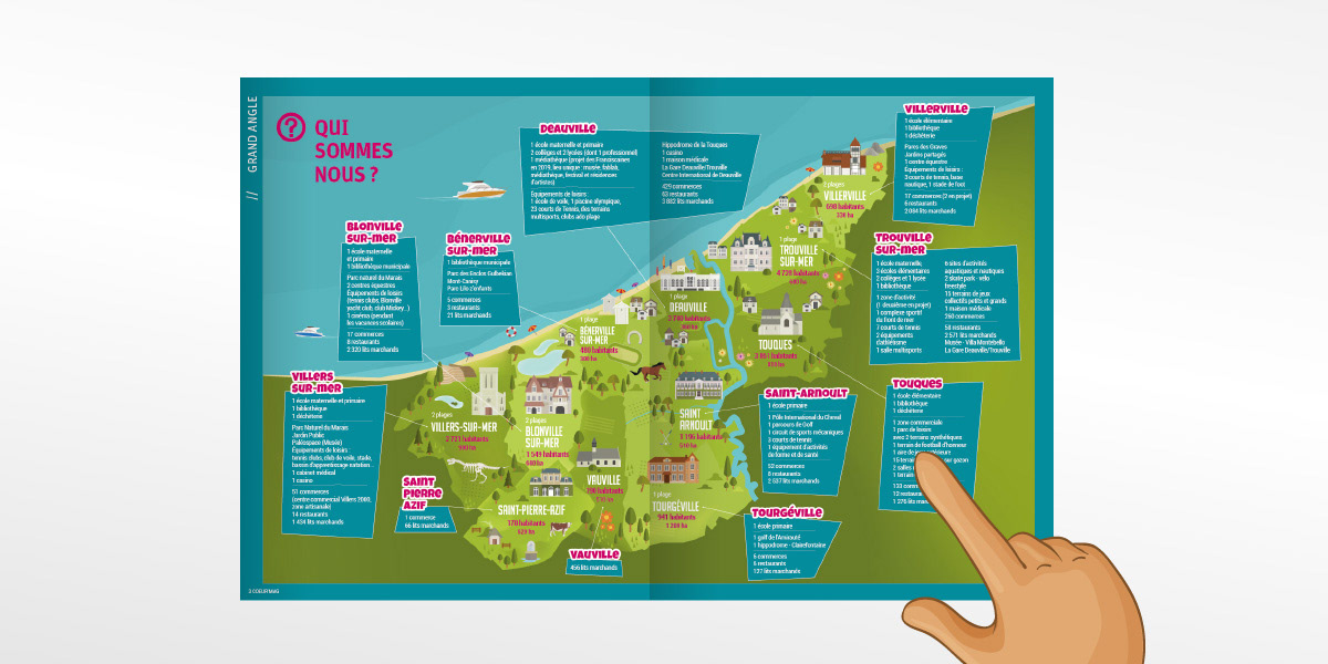Créations d’illustrations et mise en page du dossier thématique du magazine de la Communauté de communes Cœur Côte Fleurie.