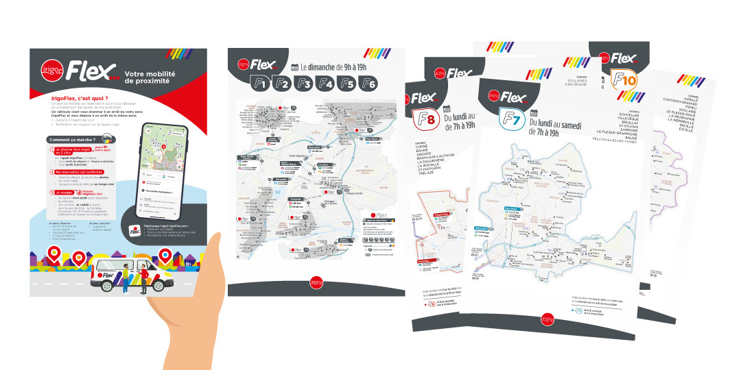 Design graphique pour Irigo Flex & FlexMobi — le service de transport à la demande du réseau Irigo à Angers